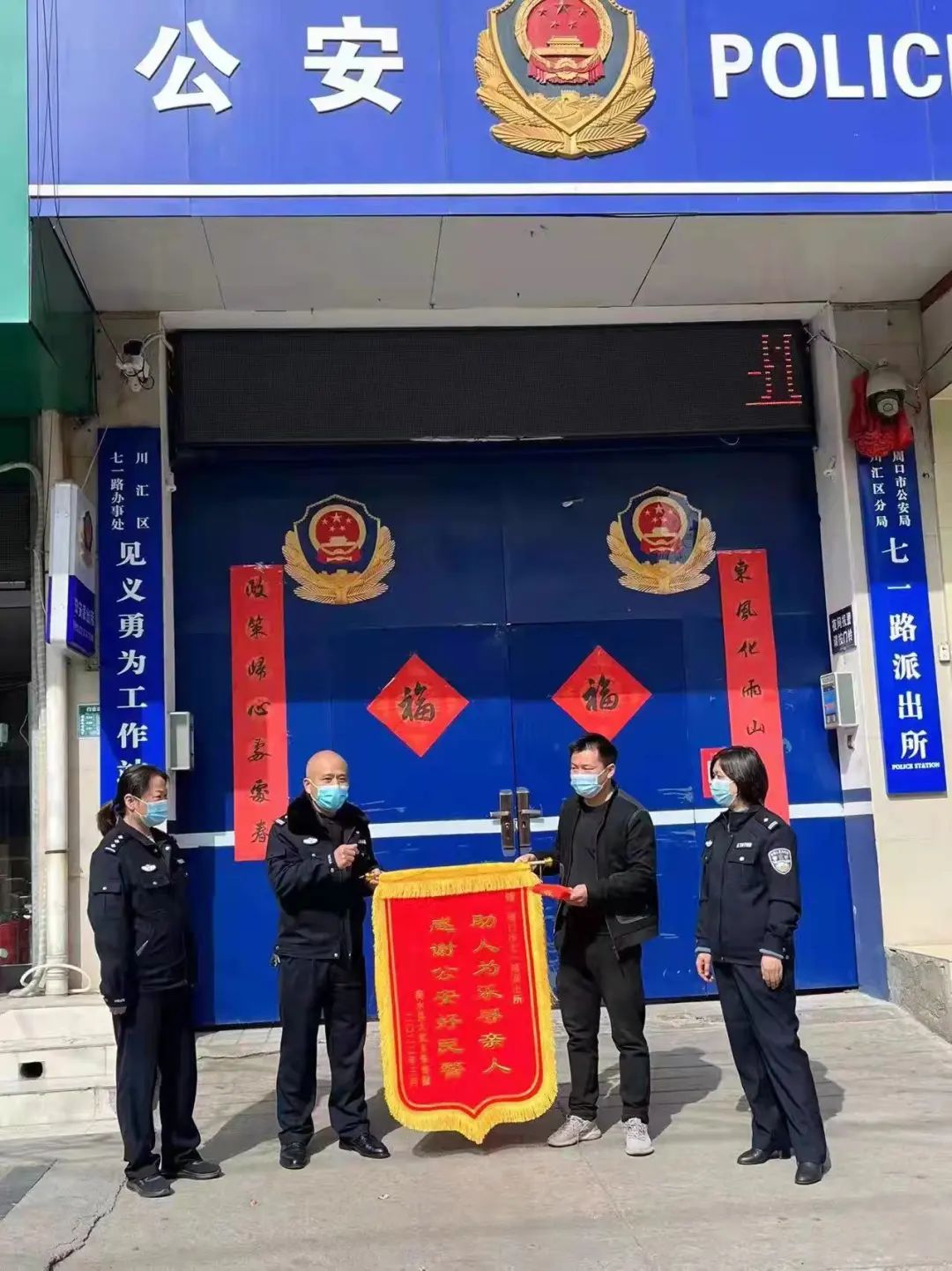 3月24日上午,老人的家属专程来到七一路派出所将一面绣有“助人为乐寻亲人感谢公安好民警”的锦旗送到派出所民警手中,向民警表达感激之情。