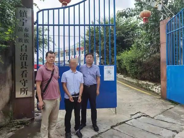 唐国旗(左一)与同事在贵州镇宁抓获犯罪嫌疑人
