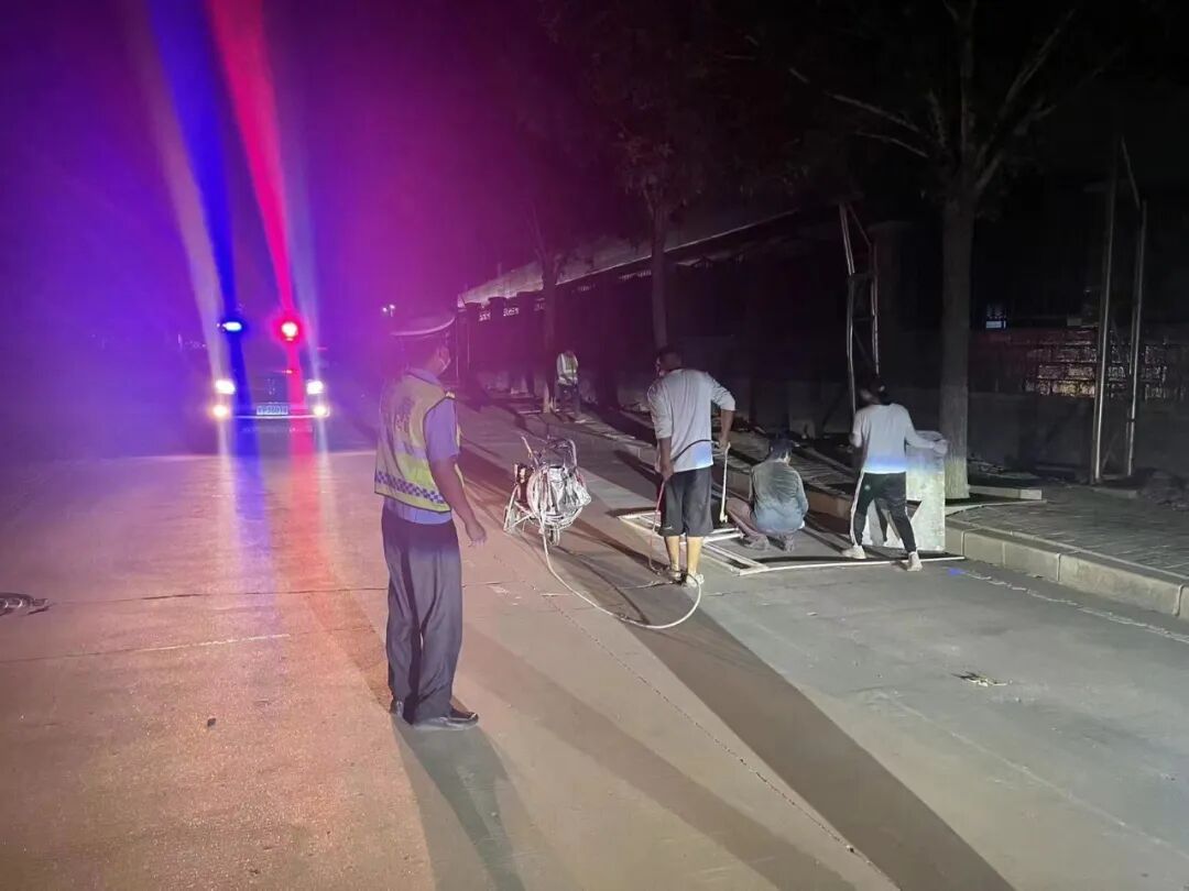 通过调研论证,选定停车泊位划线区域后,赵明又考虑到企业项目赶工期的实际需要,积极与交通设施中心沟通,决定选择错开企业项目正常生产经营时间,在夜晚进行停车位的施划。经过一夜的努力,圆满完成该园区周围路段停车位的施划工作。周口交警用实际行动为企业和周围群众解决了规范停车的问题,赢得了企业员工和附近群众的一致好评。