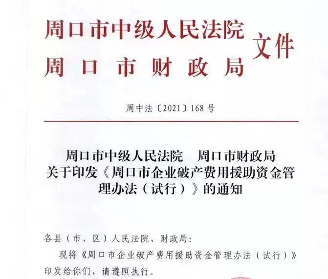 为打通破产程序启动难的“最后一公里”,周口中院从促进破产企业有序退出市场,助力优化营商环境的角度出发,积极争取市委市政府支持,先后建立破产处置府院联动机制、破产经费保障机制,由市级财政拨付资金,设立破产援助专项资金,专项用于支付“无产可破”案件中发生的破产费用,包括破产案件诉讼费、分配债务人财产费用、管理人报酬等,有效破解了破产程序启动难这一难题。同时,制定出台《周口市企业破产费用援助资金管理办法》(试行),组建破产审判专业团队,成立破产费用援助资金审批小组,破产管理人在办理无产可破案件时,可按照程序向周口中院申请资金援助。