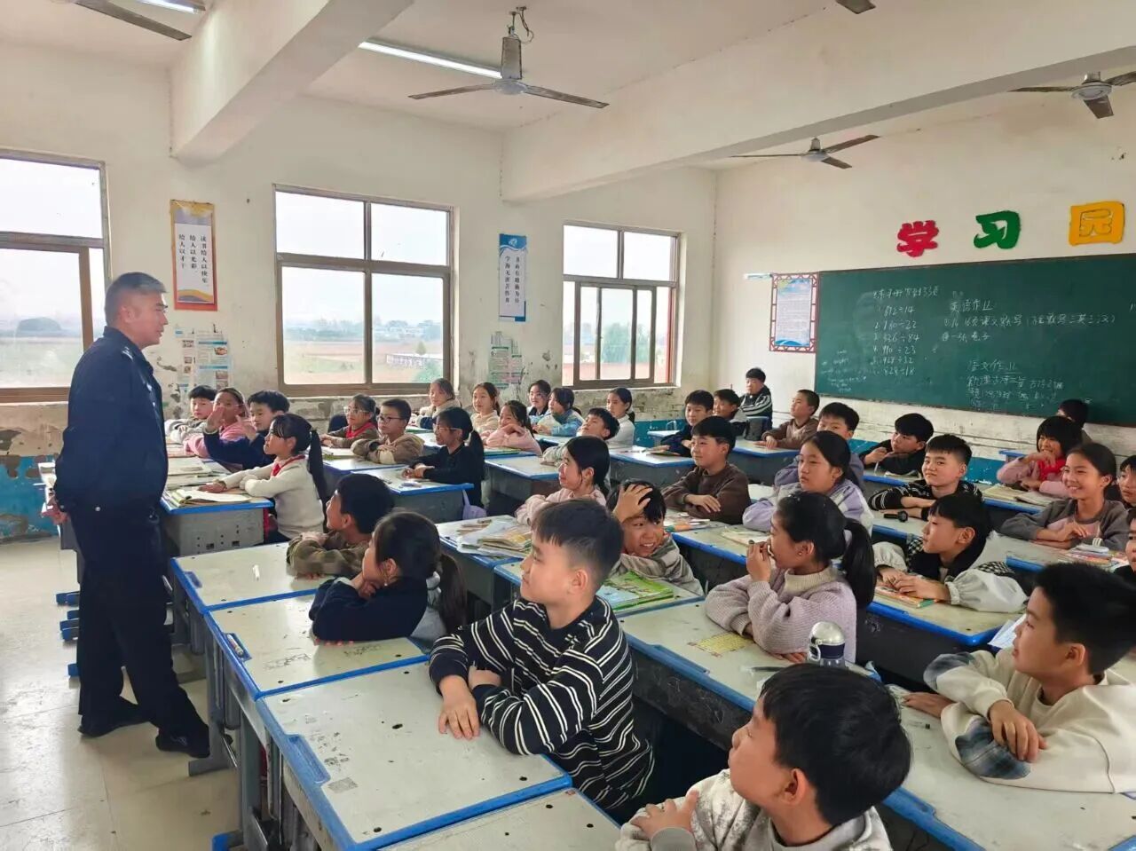 为进一步加强未成年人法治教育,提升其法治意识,安全防范及自我保护能力,全力营造安全、和谐、健康的校园环境,10月29日,商水县公安局汤庄派出所民警胡锦堂、辅警孟子续走进汤庄乡春风学校,为四年级师生带来了一场内容丰富、形式生动的“法治进校园”专题宣传活动。