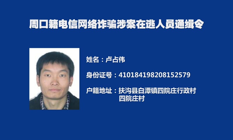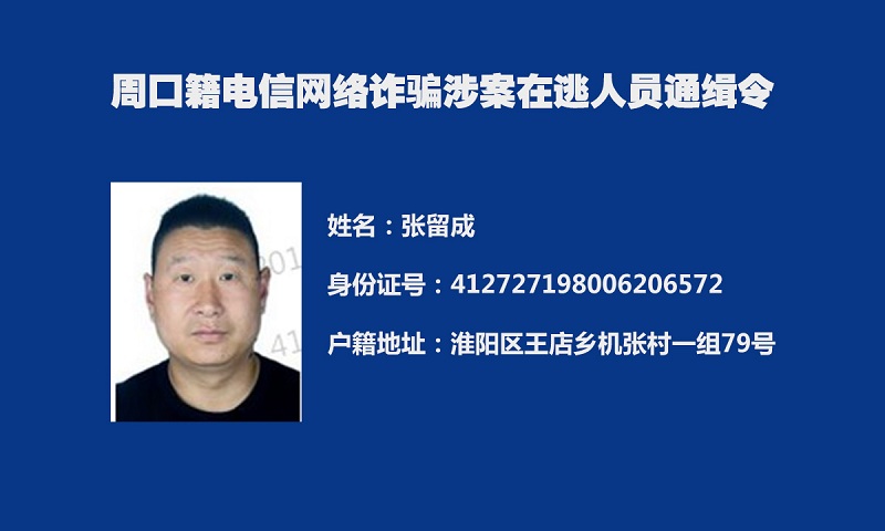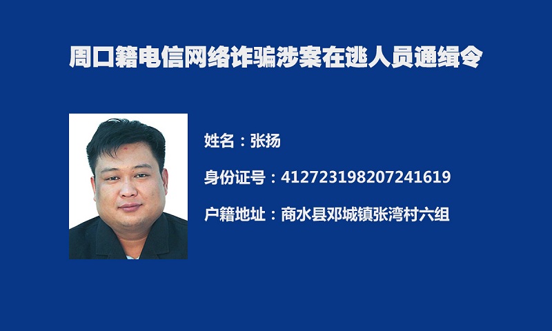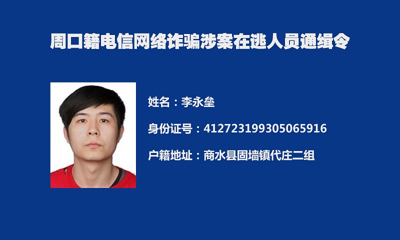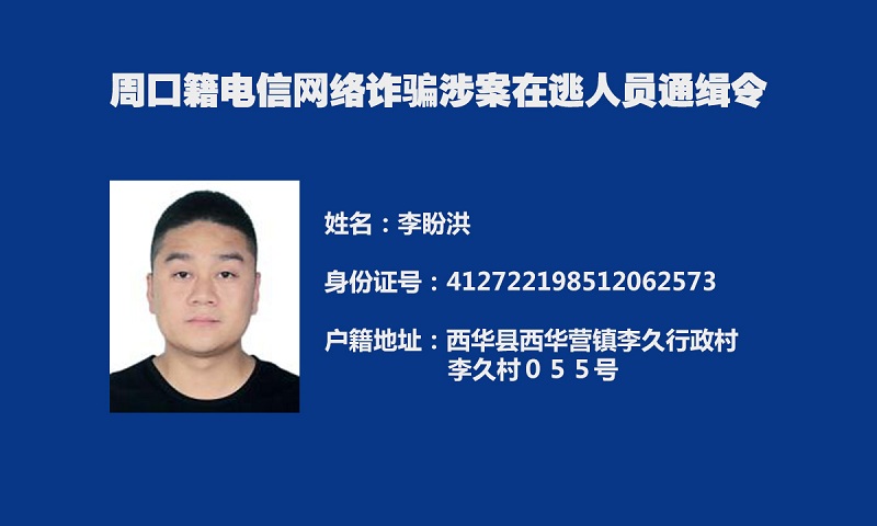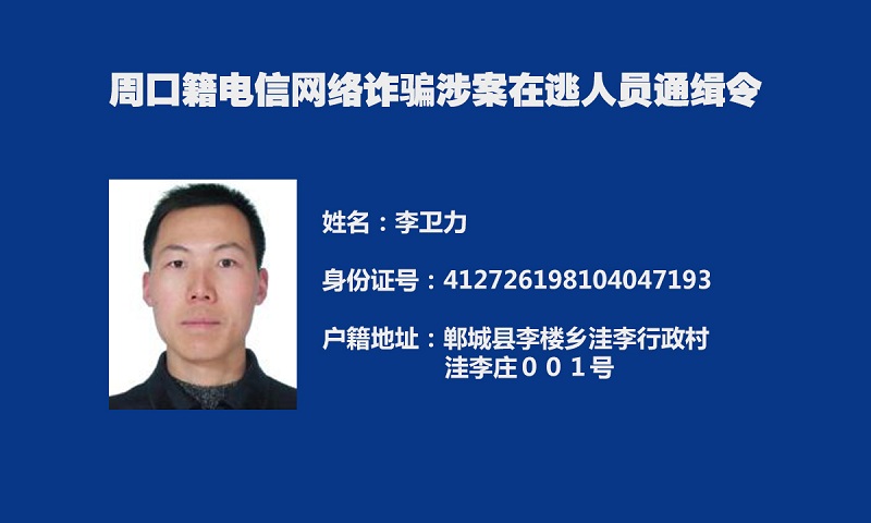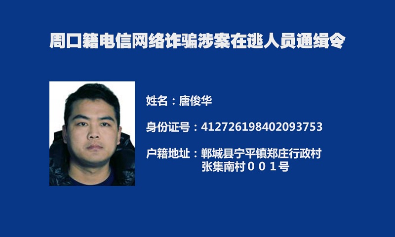 为深入推进我市打击治理电信网络新型违法犯罪“迅雷”行动,及早消除社会隐患,切实保障人民群众财产安全,全力维护社会治安大局持续稳定,周口市公安局决定,对全市涉嫌电信网络诈骗犯罪在逃人员予以悬赏通缉。