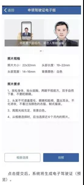 驾驶人申领“电子驾驶证”时需提交申请人的人像照片。目前提供三种方式: