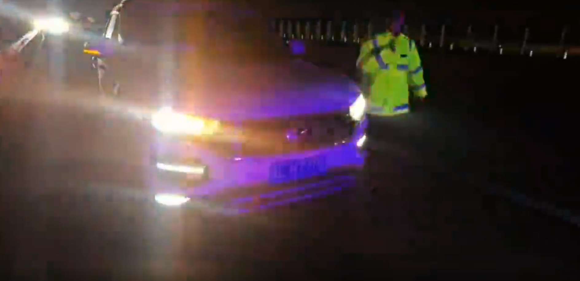 2月25日晚10时许,周口市公安局交通管理支队商南高速大队淮阳中队民警正在执行巡逻任务,突然发现后方一辆轿车不断交换灯光示意强行通过,看到警车后又不断鸣笛示意。