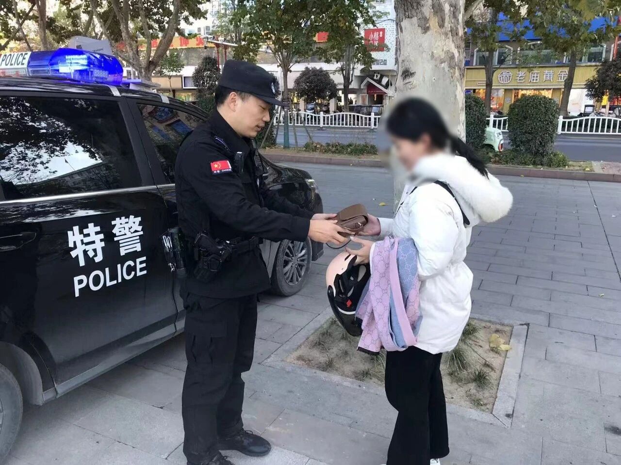 功夫不负有心人,不久后,一名群众在广场拾获手机并主动交到特警队员手中。经核实,正是失主所丢。拿着失而复得的手机,失主连声道谢。王文杰则细心叮嘱:“外出一定要保管好随身物品。”